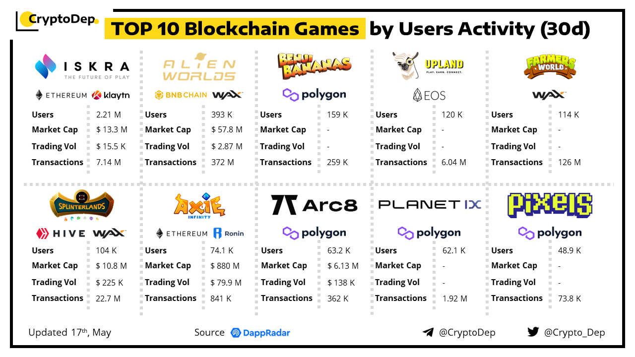 With the spread of Web3 technologies, blockchain games became the industry trend and keep on attracting the attention of gaming & crypto communities. We have made a recap of top blockchain games by users activity in the last 30 days, so let's take a look!