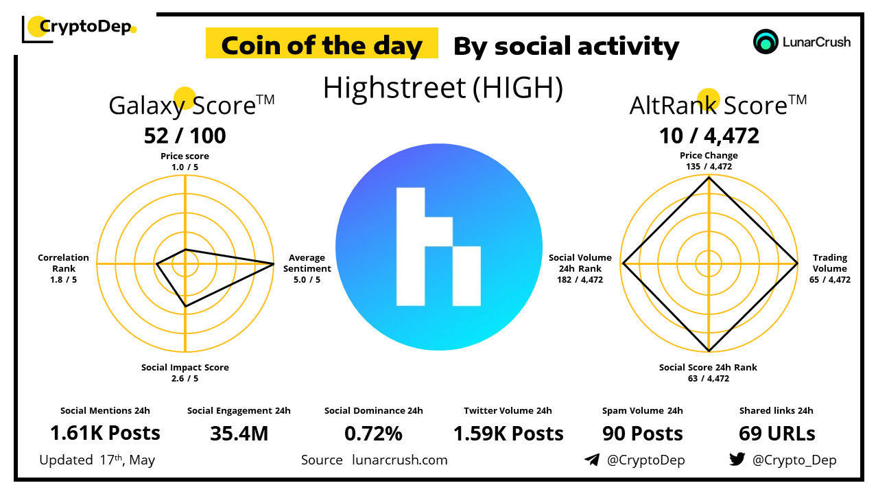 ββCoin of the day by social activity - Highstreet (HIGH)