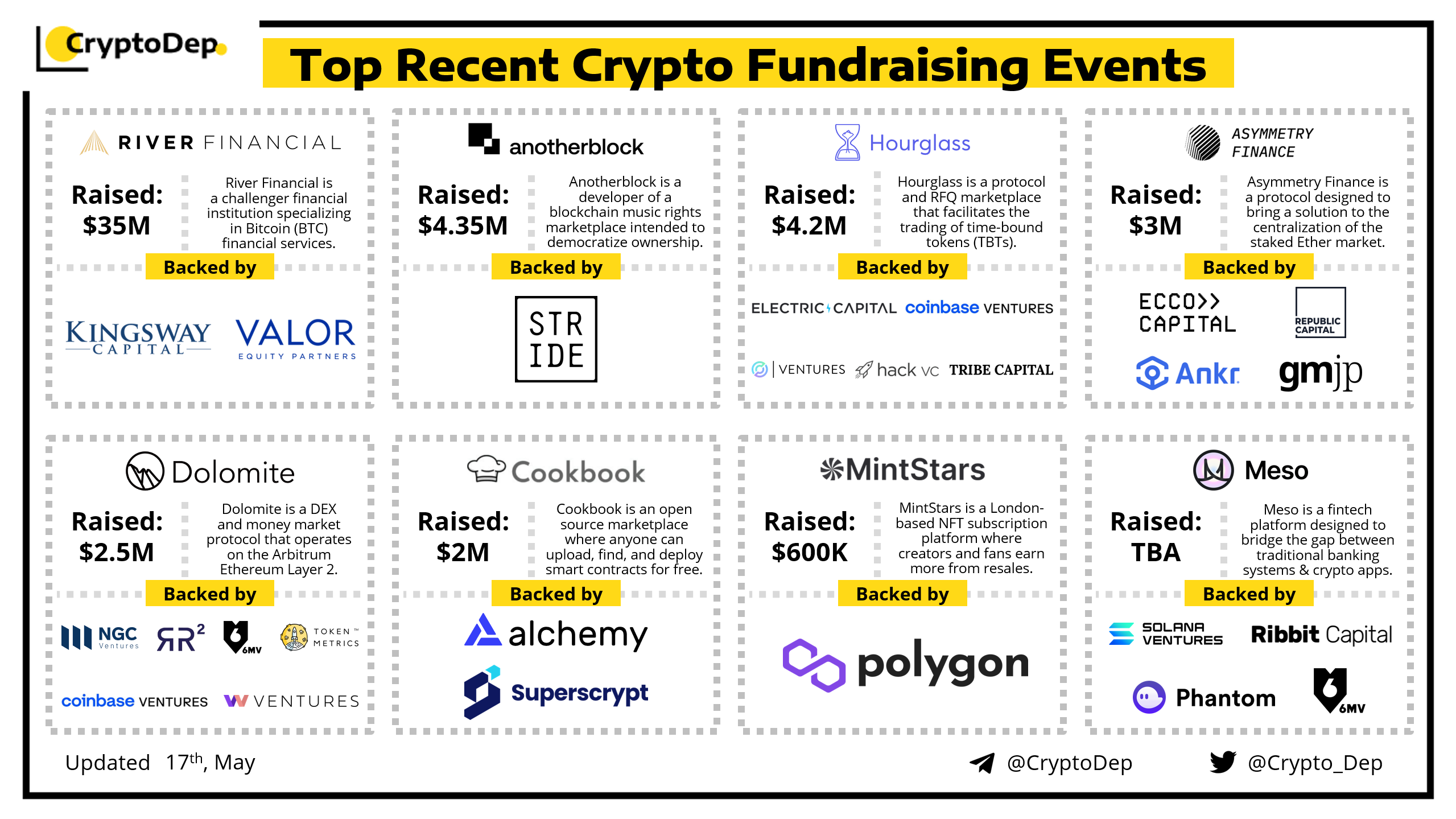 We are excited to present a list of some recent crypto fundraising events, backed by well-known investors such as Coinbase Ventures, Electric Capital, Circle Ventures, NGC Ventures, Solana Ventures, Polygon Labs, Ankr, Phantom, and others