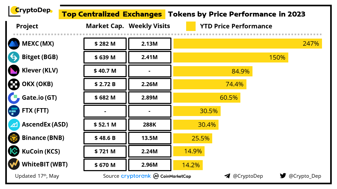 ββTop Centralized Exchange (CEX) Tokens by Price Performance in 2023