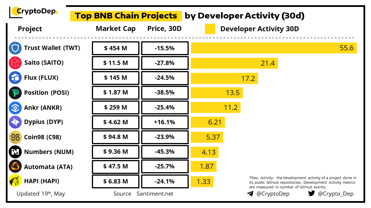 ββTop BNB Chain Projects by Developer Activity (30d)