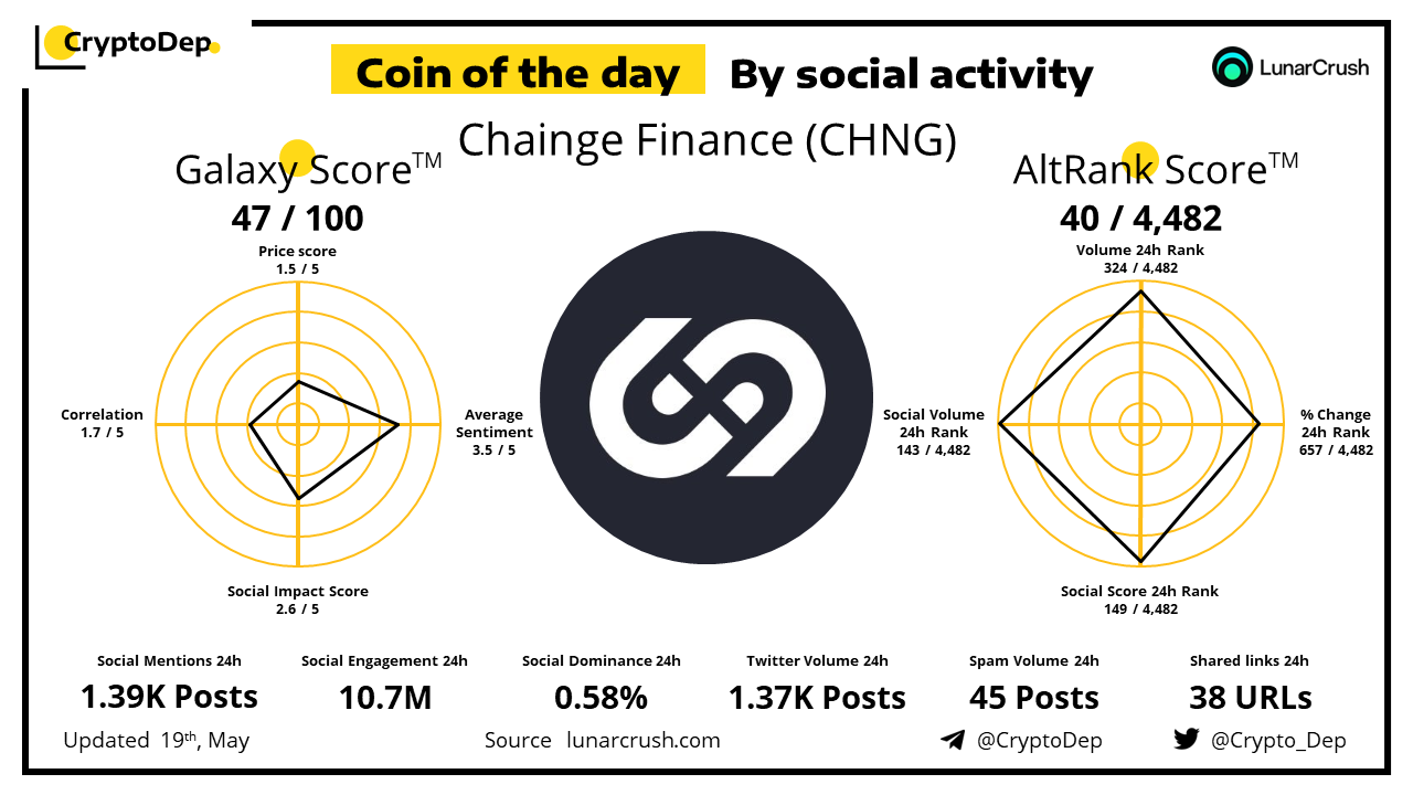 ββCoin of the day by social activity - Chainge Finance (CHNG).