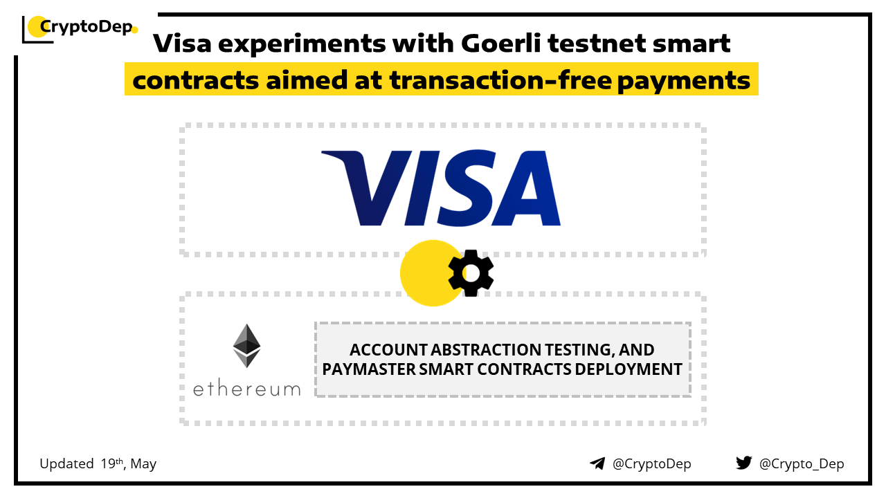 Visa, a global payments giant, has conducted βaccount abstractionβ testing, deploying βPaymasterβ smart contracts on Ethereumβs Goerli testnet aimed at transaction-free payments. The objective of these contracts is to simplify user interaction with the Ethereum network by eliminating the need for end-users to hold ether for transaction or βgasβ fees or letting users pay with any token.