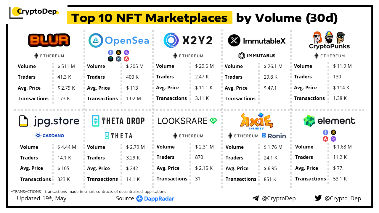 An NFT marketplace is a digital platform for buying and selling NFTs. Let's take a look at some of the best-performed NFT marketplaces by volume in the last 30 days, according to the data from DappRadar.