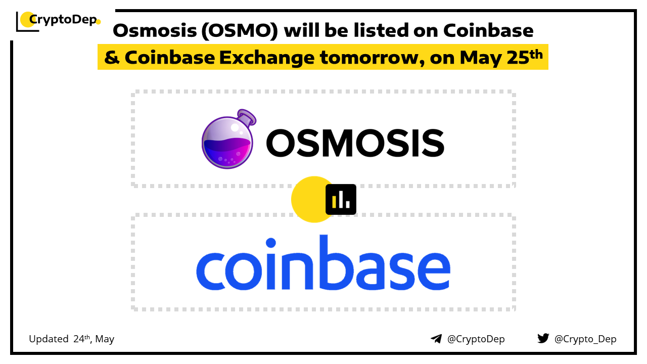 Osmosis (OSMO) will be listed on Coinbase & Coinbase Exchange tomorrow, on May 25th