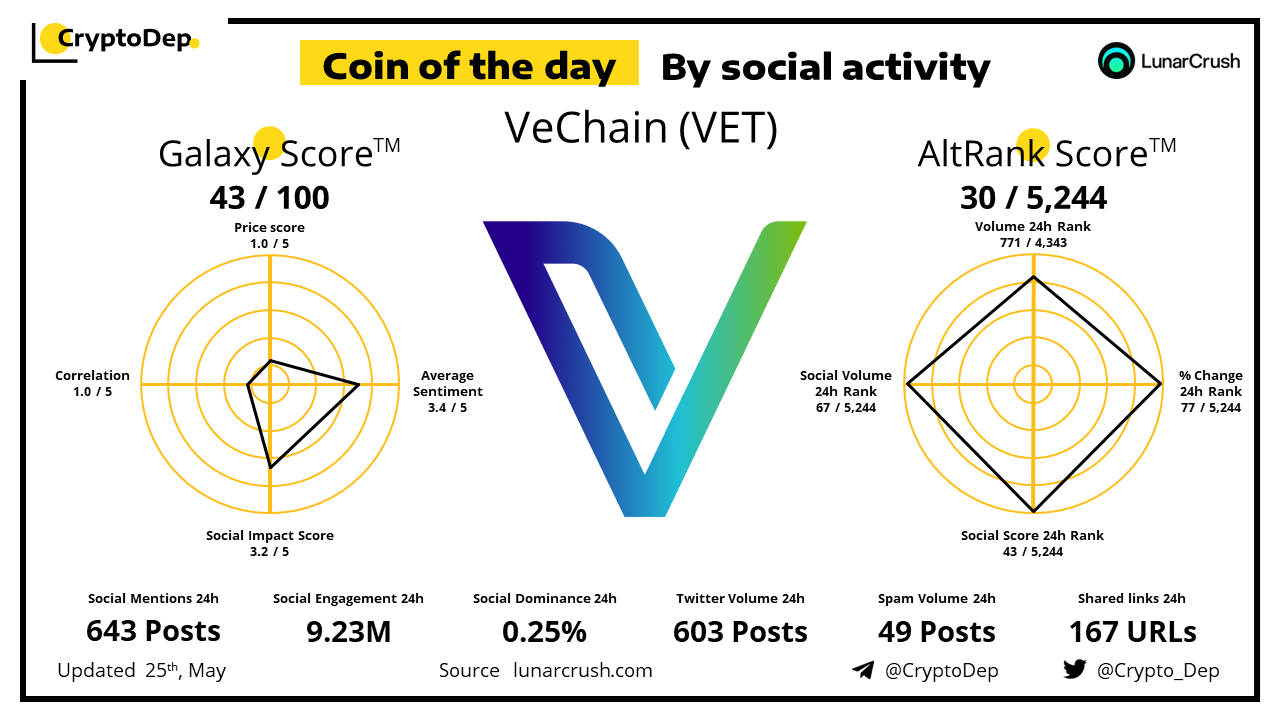 Coin of the day by social activity - VeChain (VET).