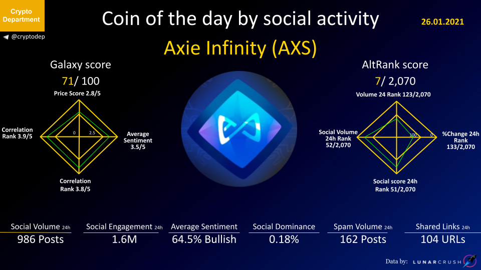 ββCoin of the day by social activity - Axie Infinity (AXS).