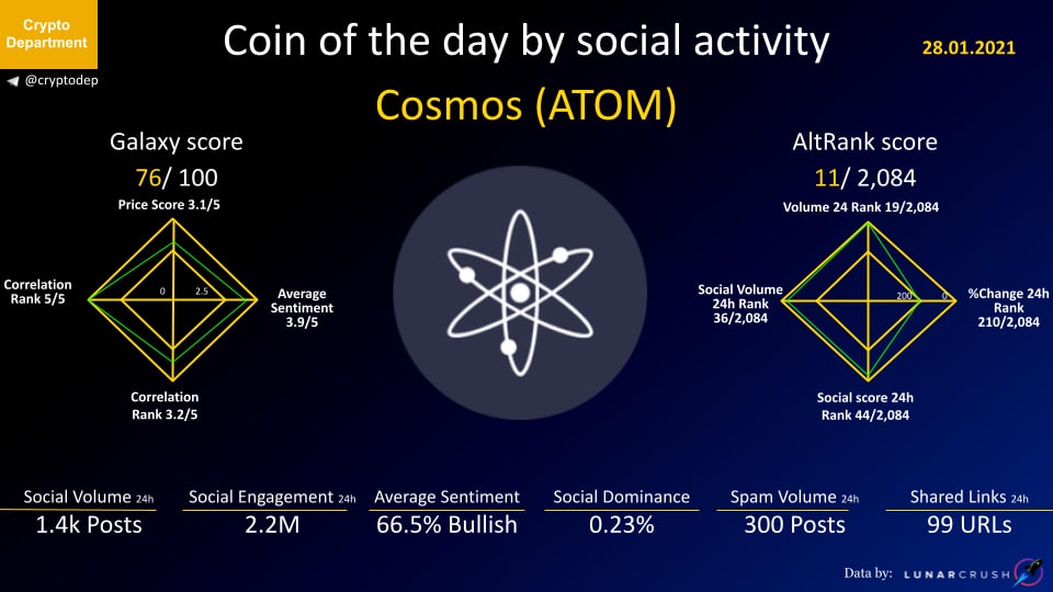 ββCoin of the day by social activity - Cosmos (ATOM).