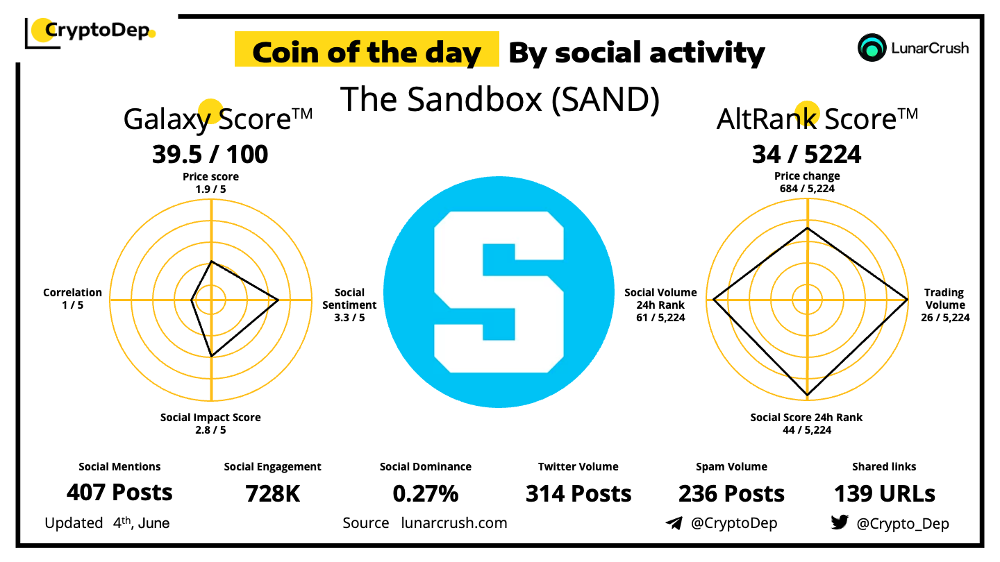 Coin of the day by social activity - The Sandbox (SAND).
