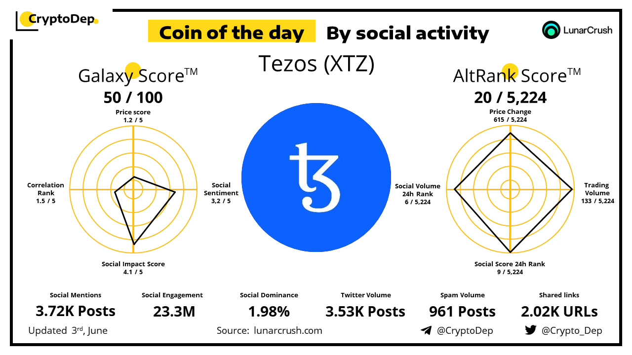 Coin of the day by social activity - Tezos (XTZ).