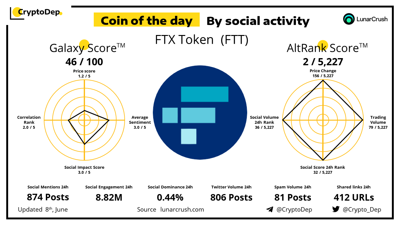 ββCoin of the day by social activity - FTX Token (FTT).
