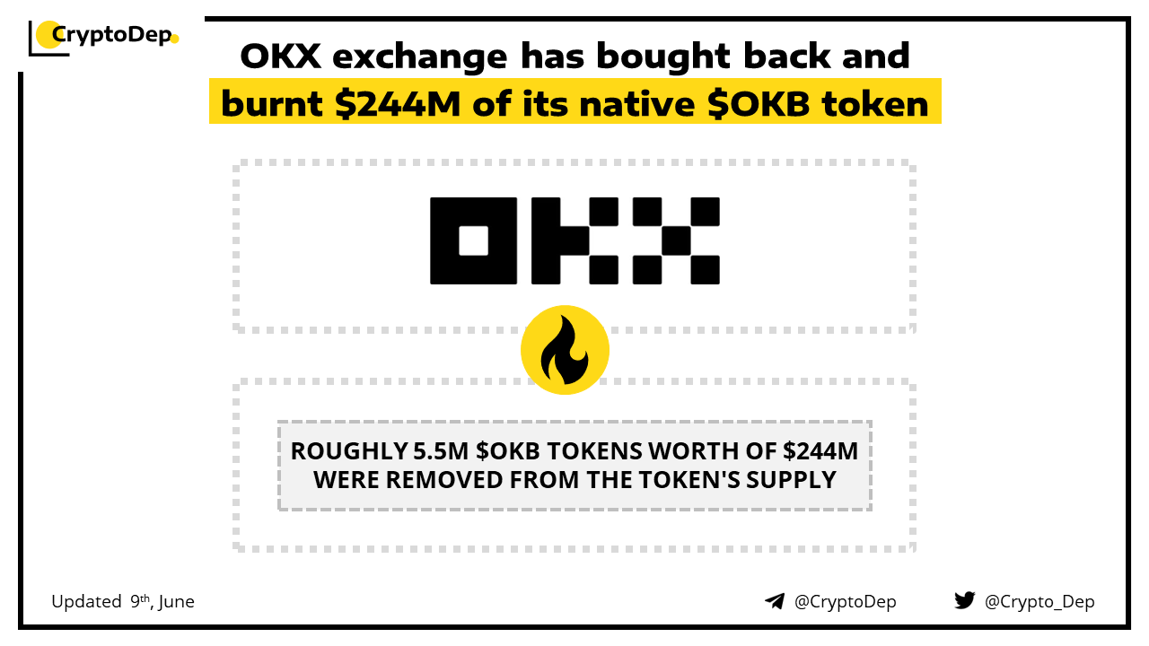 OKX exchange has bought back and burnt $244M of its native $OKB token
