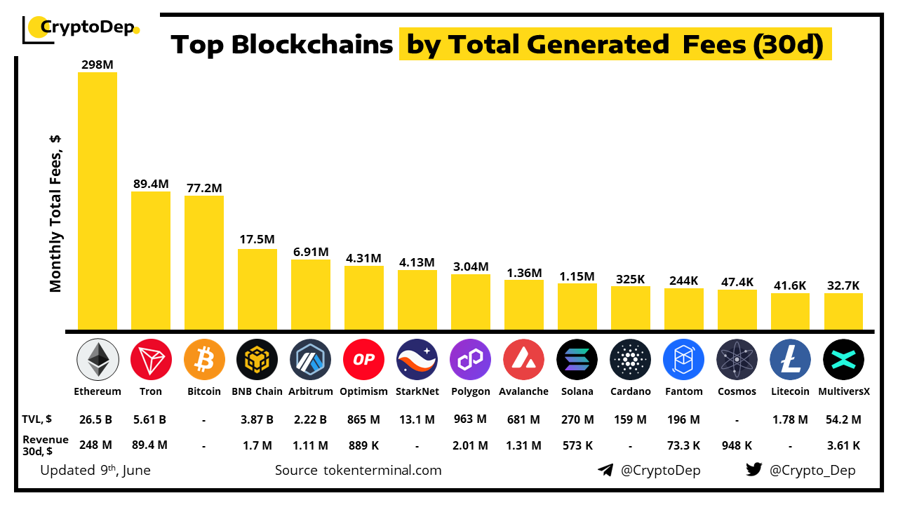 Top Blockchains by Total Generated Fees (30d)
