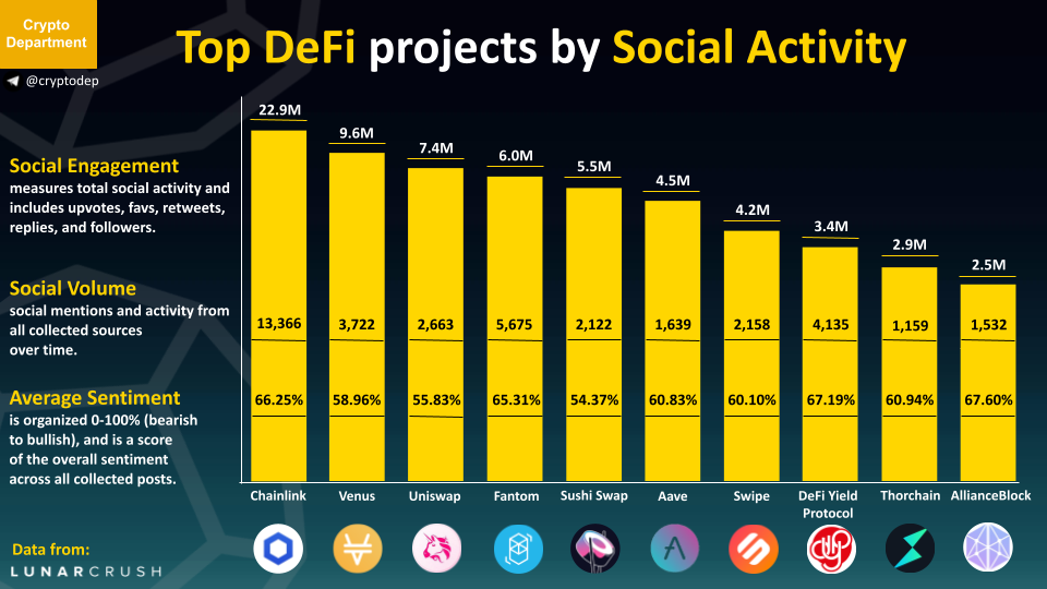 Top DeFi projects by Social Activity