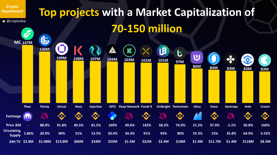 Top projects with a Market Capitalization of 70-150 million