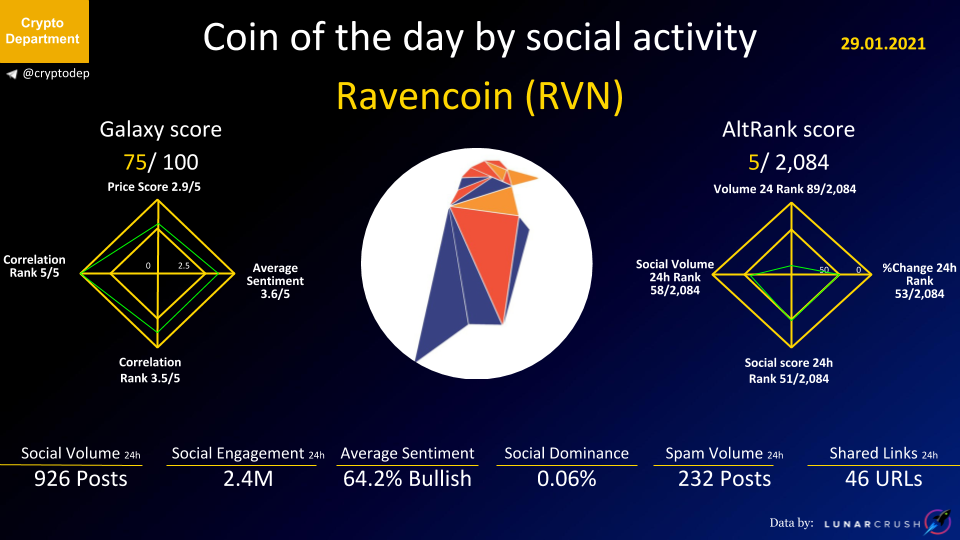 Coin of the day by social activity - Ravencoin (RVN).