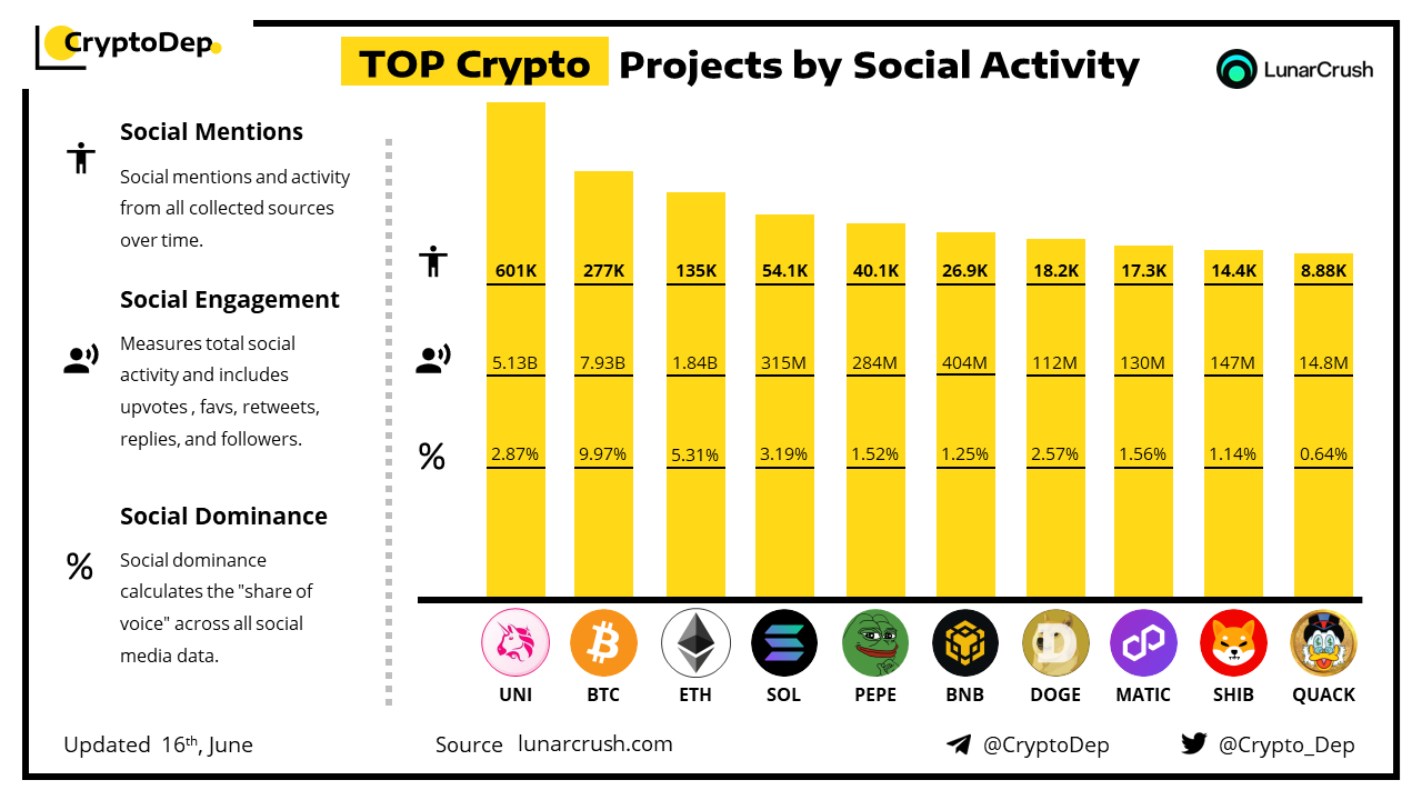 Social Engagement measures total social activity and includes upvotes, favs,retweets, replies, and followers.