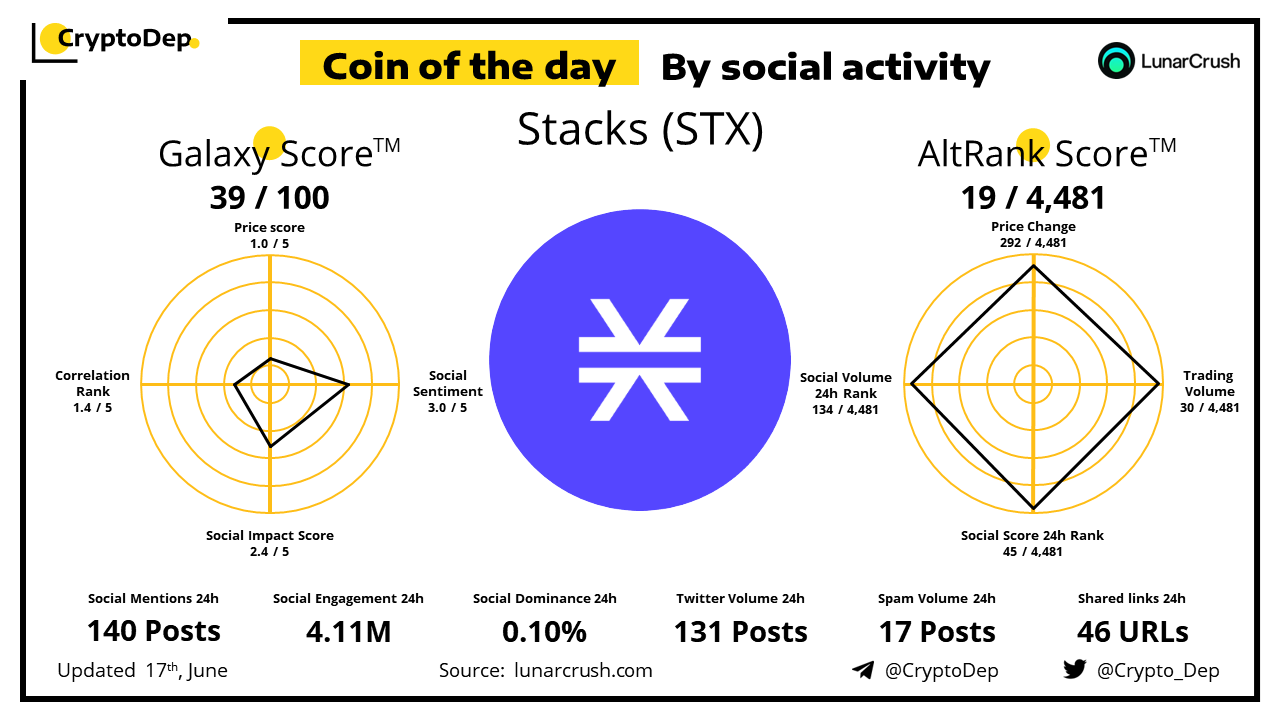 Coin of the day by social activity - Stacks (STX).