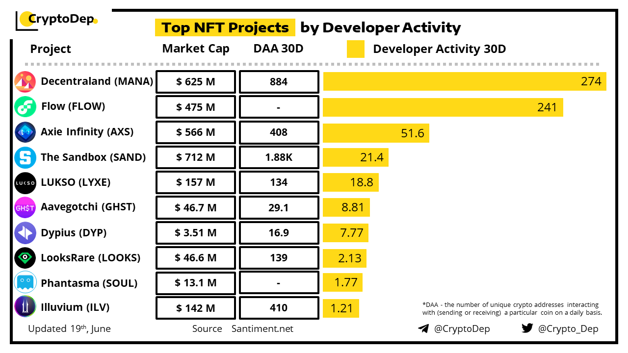 Top NFT Projects by Developer Activity
