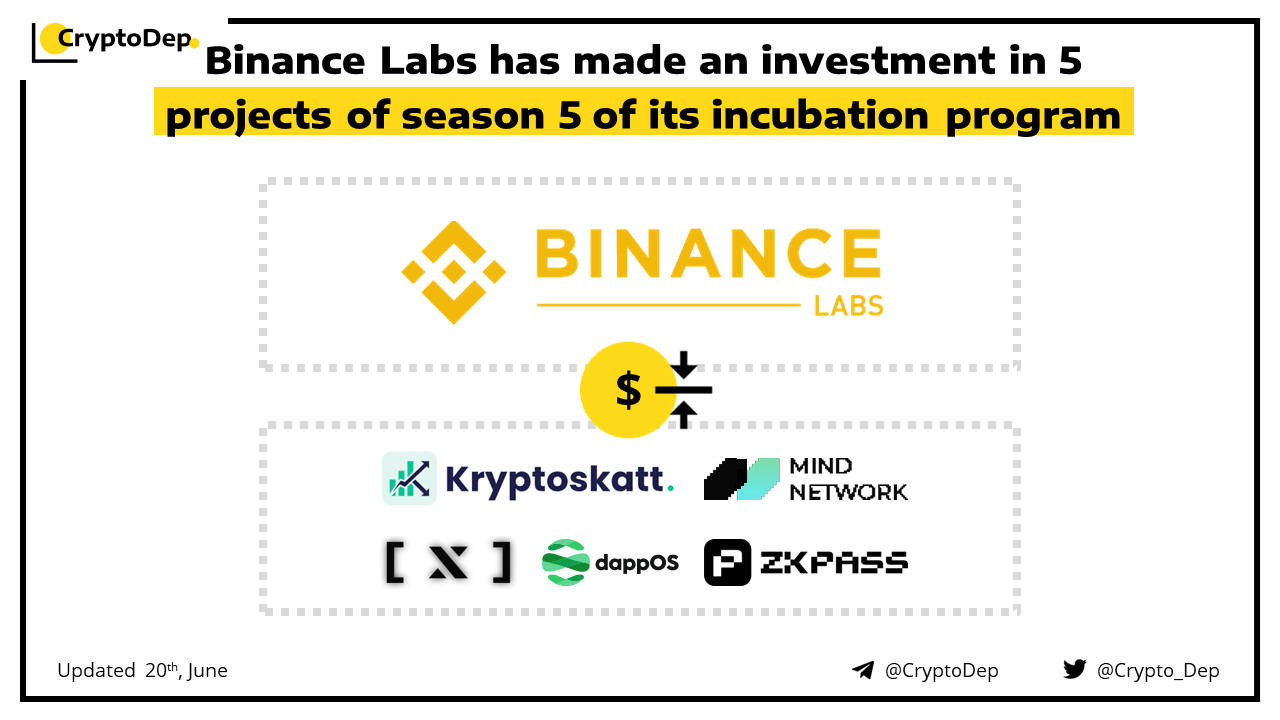 Binance Labs, the venture capital and incubation arm of Binance, has announced an investment in the five best-performing projects of Season 5 of its Incubation Program. Among the projects that have received the investment are Bracket Labs, DappOS, Kryptoskatt, Mind Network, and zkPass. Moreover, Binance announces the upcoming launch of Binance Labs Incubation Program Season 6.