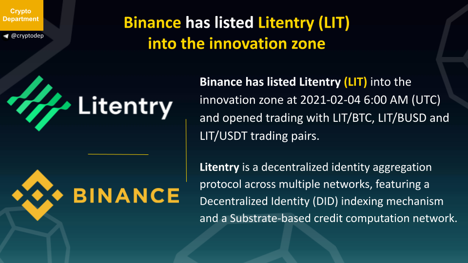 Binance has listed Litentry (LIT) into the innovation zone