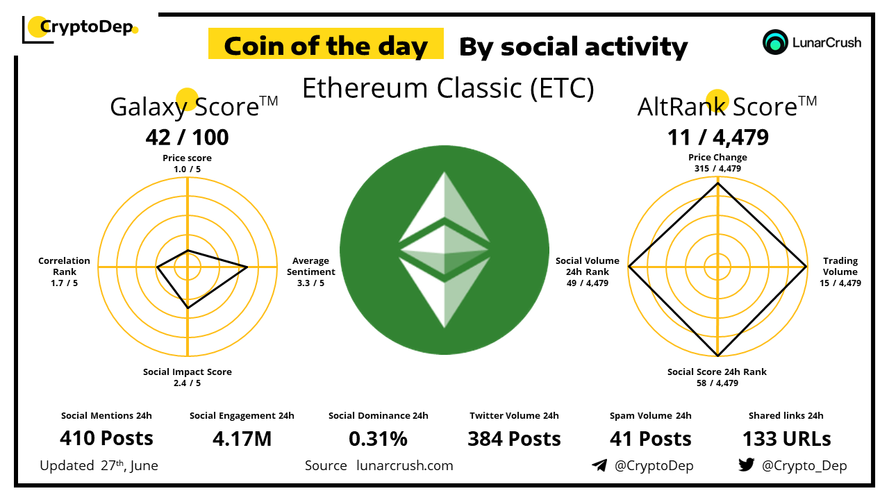ββCoin of the day by social activity - Ethereum Classic (ETC).