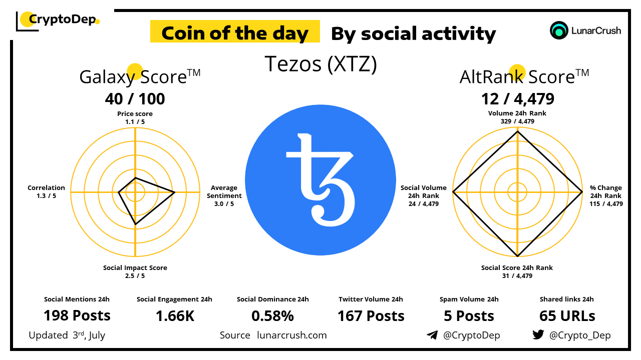 Coin of the day by social activity - Tezos (XTZ).