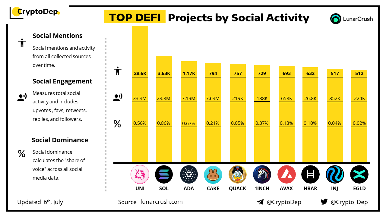 Social Engagement measures total social activity and includes upvotes, favs,retweets, replies, and followers.