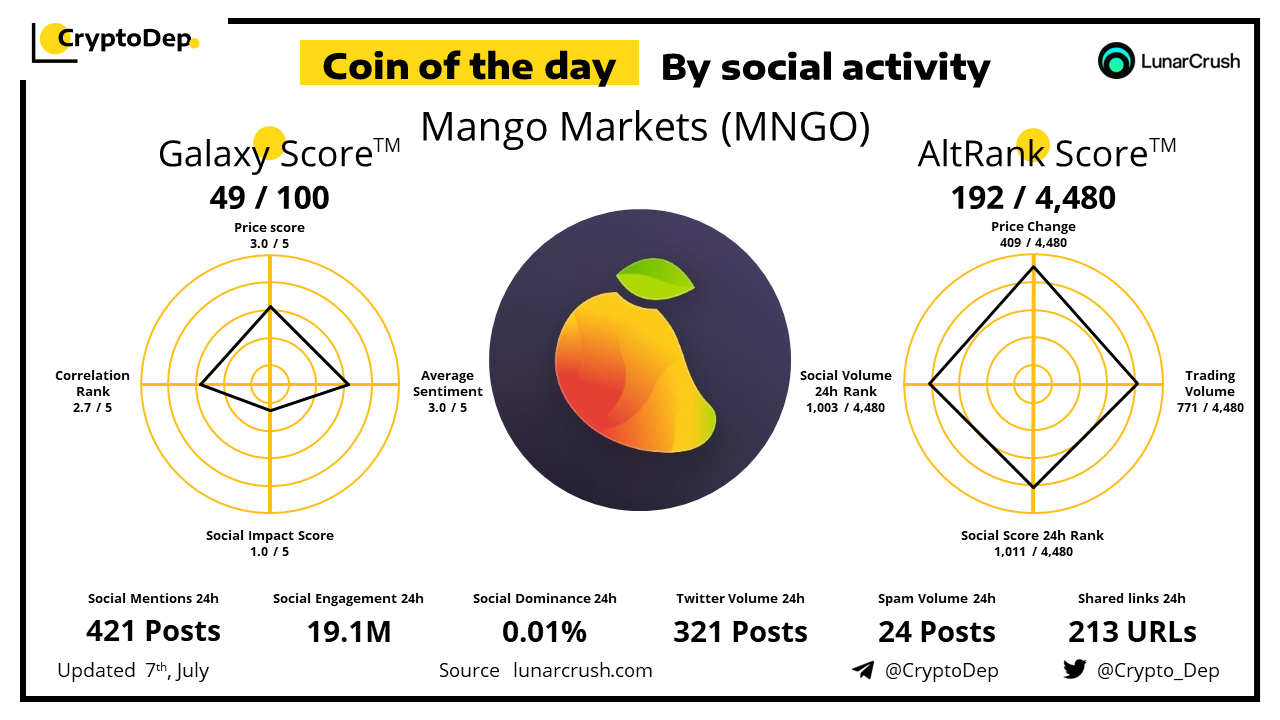 ββCoin of the day by social activity - Mango Markets (MNGO).