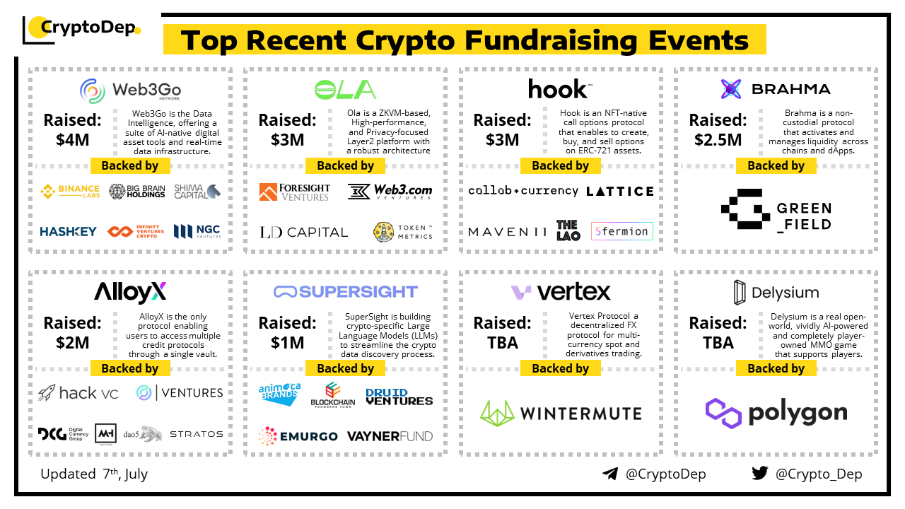 We are excited to present a list of some recent crypto fundraising events, backed by well-known investors such as Binance Labs, Animoca Brands, DCG, Circle Ventures, Hashkey, Shima Capital, NGC Ventures, Wintermute, Polygon, and others. Let's take a look!