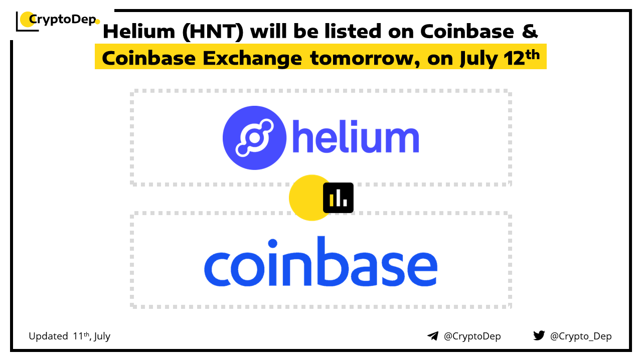 ββHelium (HNT) will be listed on Coinbase & Coinbase Exchange tomorrow, on July 12th