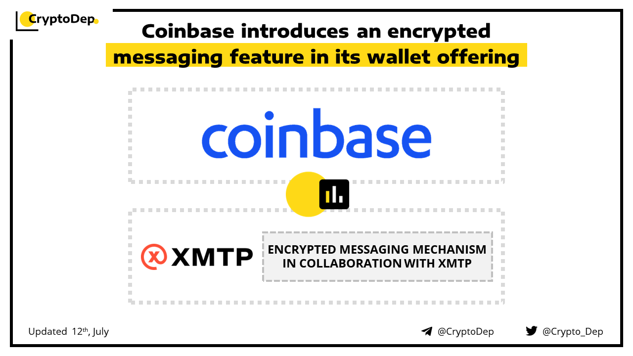 Coinbase crypto exchange has introduced an encrypted messaging feature in its wallet offering, in collaboration with the XMTP Extensible Message Transport Protocol project. Through this innovation, Coinbase Walletβs messaging will enable crypto users to establish secure communication channels between Ethereum Layer 1 and Layer 2 accounts. The process will be facilitated by crypto domain names providers cb.id, Ethereum Name Service, and Lens profiles for identification.
