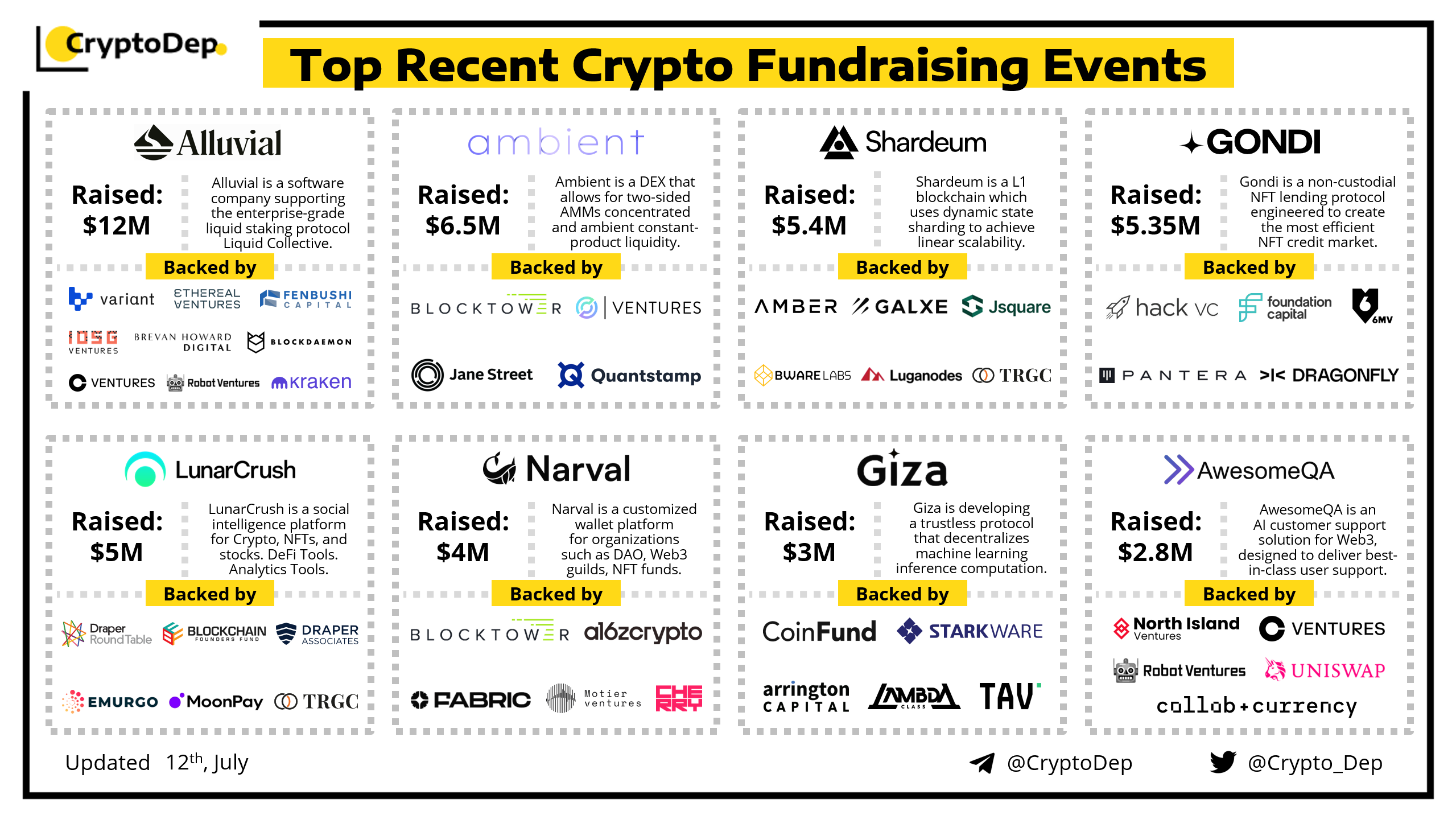 We are excited to present a list of some recent crypto fundraising events, backed by well-known investors such as a16z, Pantera Capital, Fenbushi Capital, CoinFund, Dragonfly, Arrington Capital, Coinbase, Circle, Uniswap Labs, StarkWare, and others. Let's take a look!