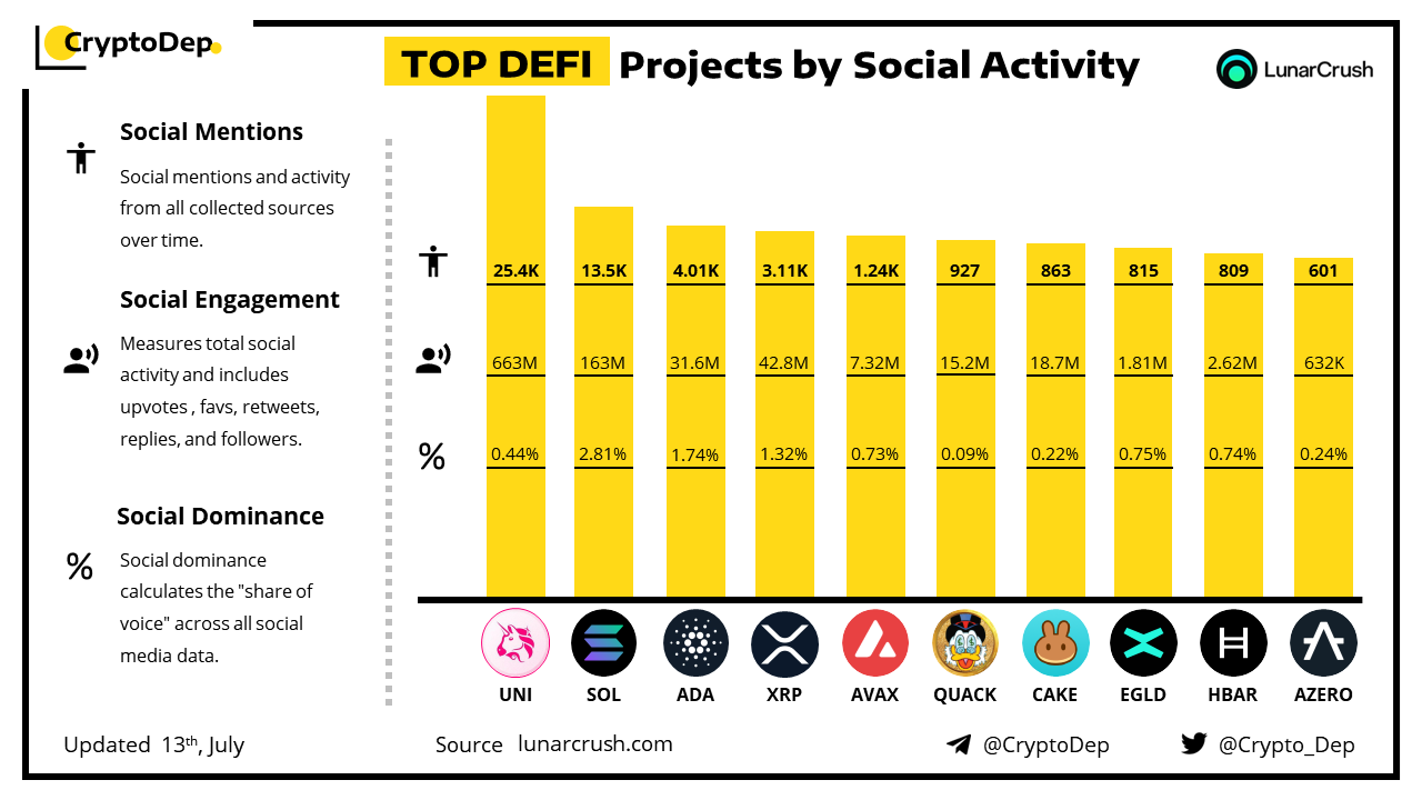 Social Engagement measures total social activity and includes upvotes, favs,retweets, replies, and followers.