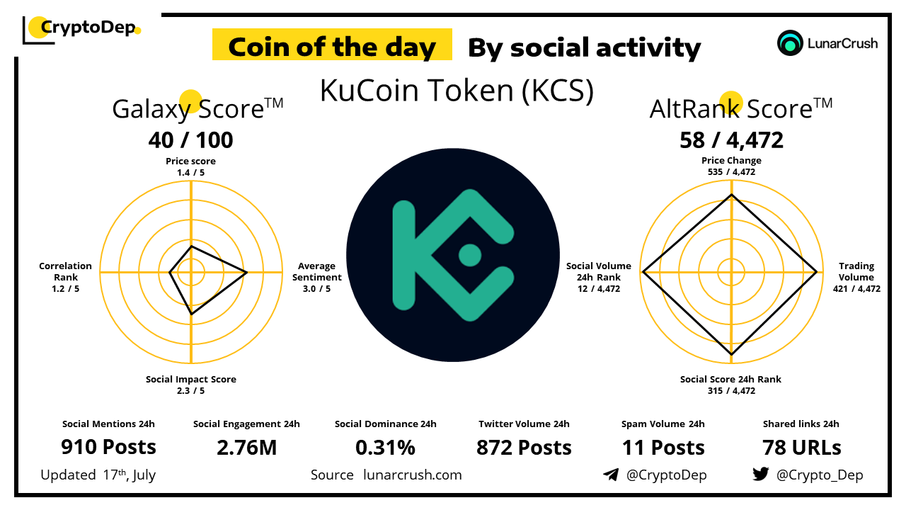 ββCoin of the day by social activity - KuCoin Token (KCS).