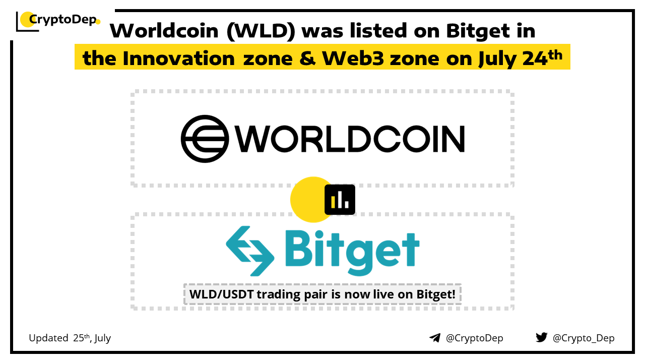 Worldcoin (WLD) was listed on Bitget in the Innovation zone & Web3 zone on July 24th