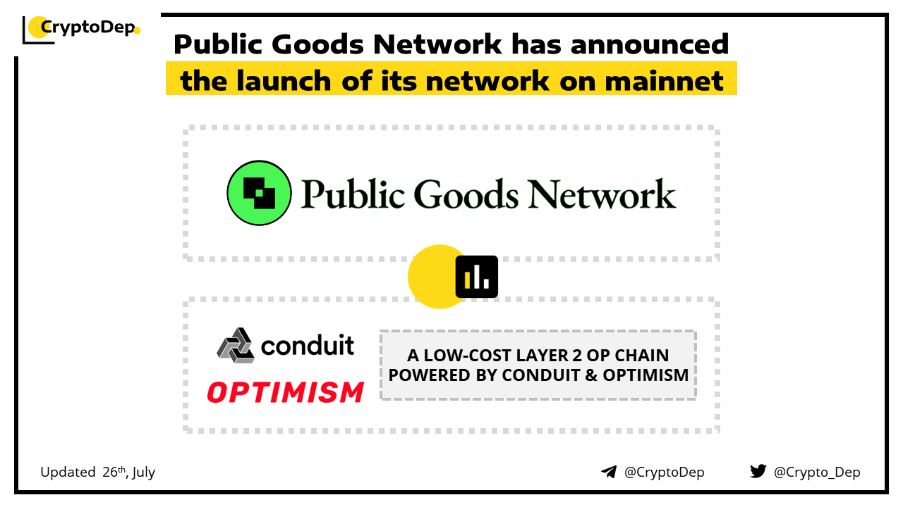 Public Goods Network, a low-cost L2 OP Chain developed by Gitcoin, goes live on its mainnet. PGN is a highly composable EVM-compatible rollup, powered by Conduit and Optimism and aimed at supporting public goods in the Ethereum ecosystem and beyond.