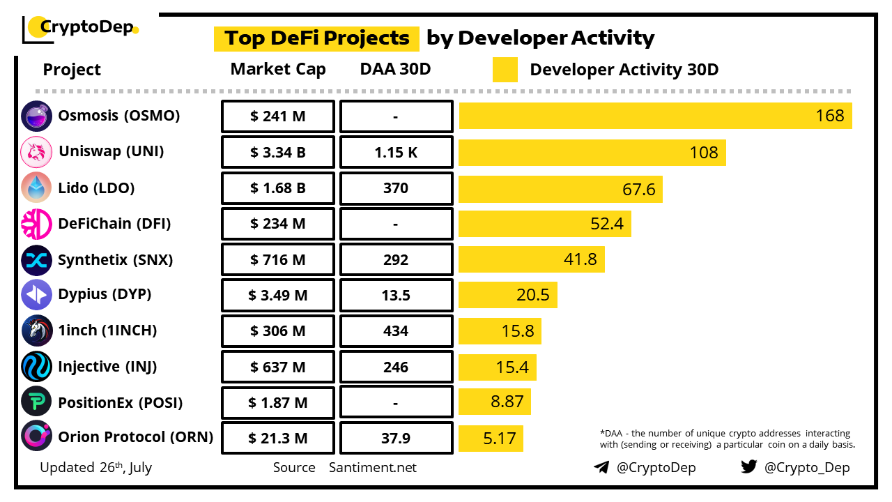 Dev.Activity - the development activity of a project done in its public Github repositories. Development Activity metrics are measured in a number of Github events.