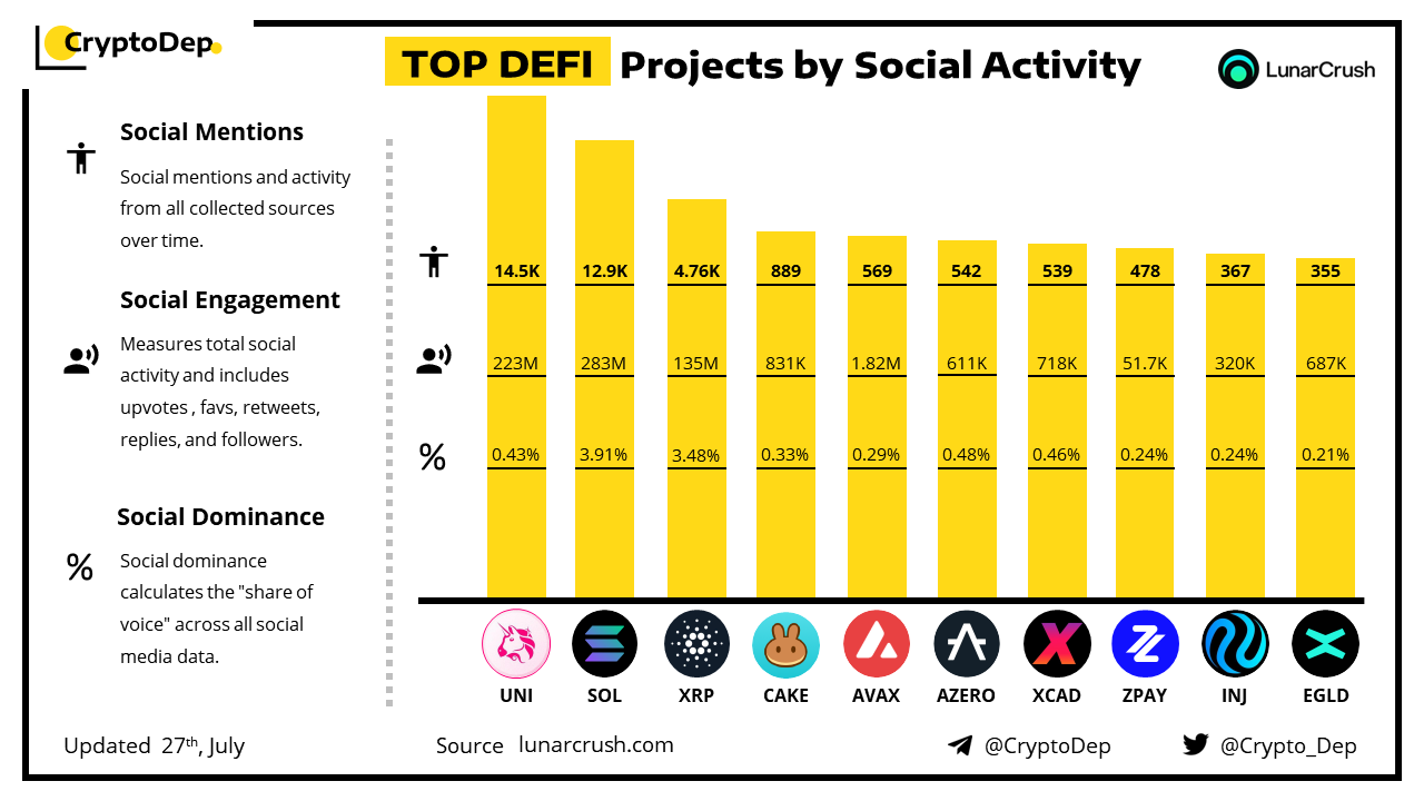 Social Engagement measures total social activity and includes upvotes, favs,retweets, replies, and followers.