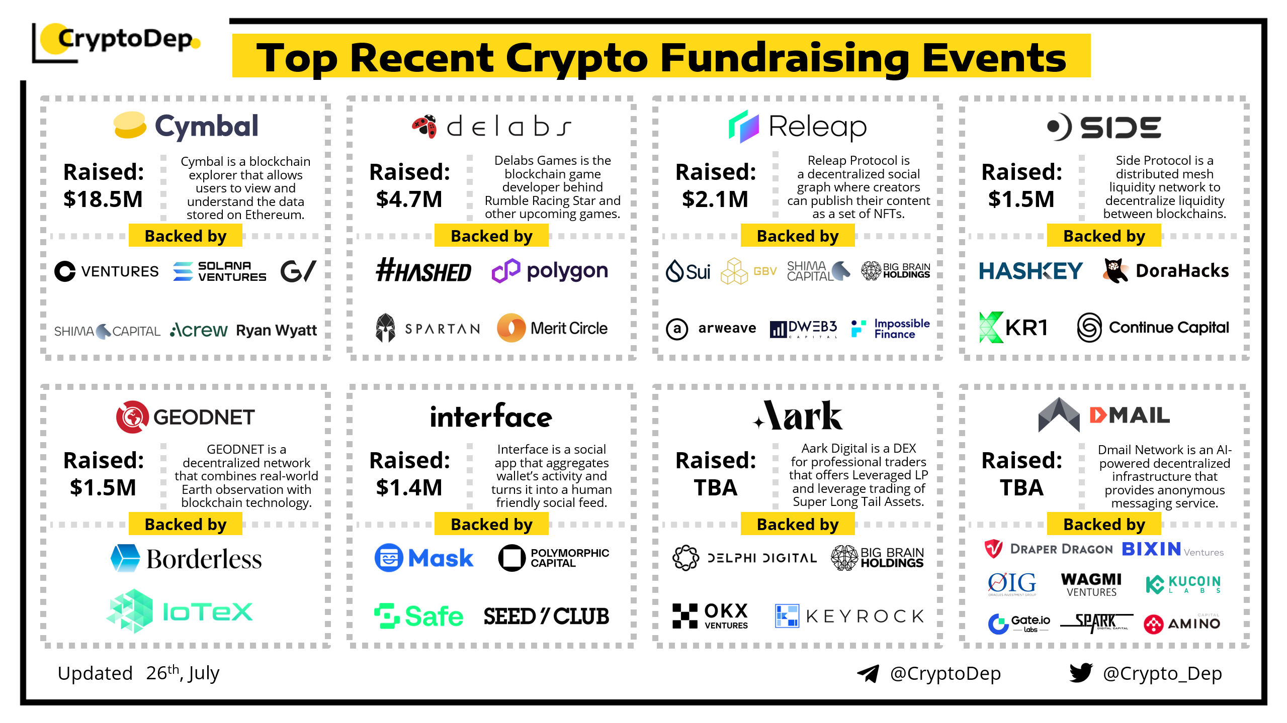 We are excited to present a list of some recent crypto fundraising events, backed by well-known investors such as Google Ventures, Hashed, Coinbase Ventures, Hashkey, Solana Ventures, Polygon Ventures, Sui Foundation, GBV Capital, OKX Ventures, KuCoin Labs, Mask Network, IoTeX, Impossible Finance, Arweave, and others. Let's take a look!