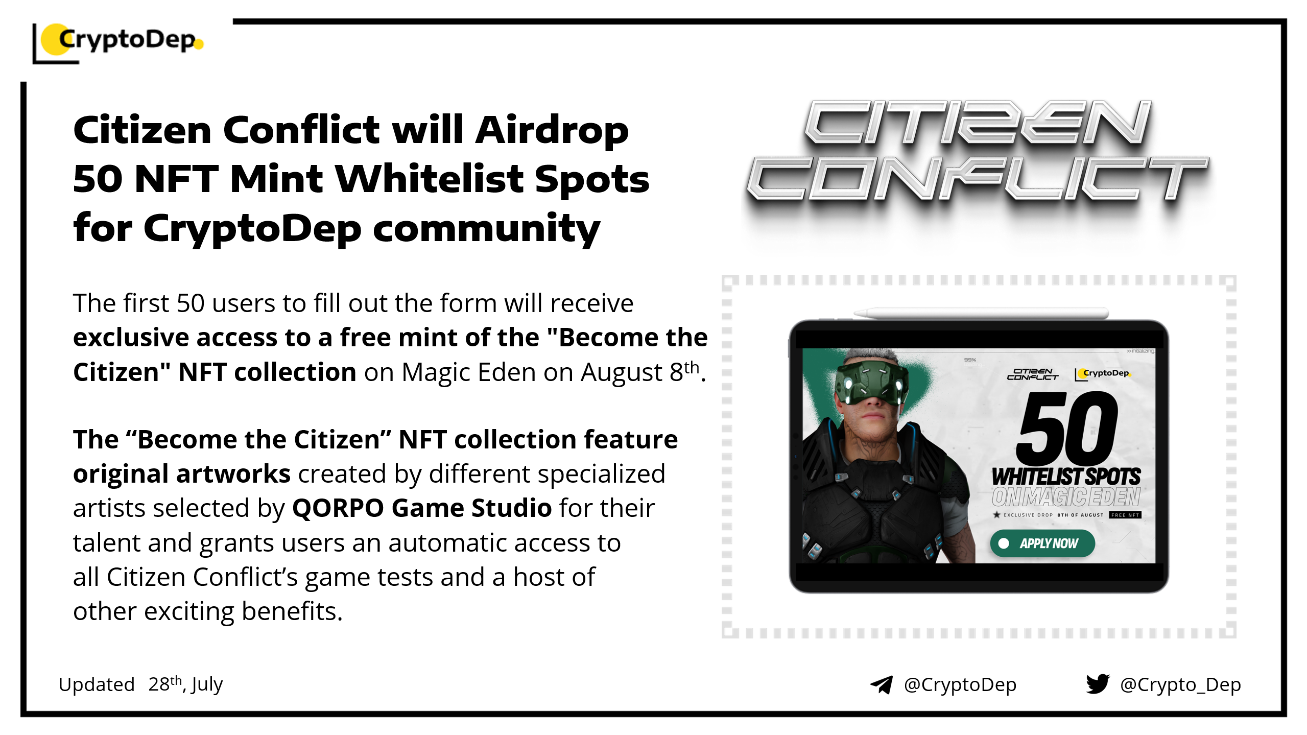 ββCitizen Conflict will Airdrop 50 NFT Mint Whitelist Spots for CryptoDep community