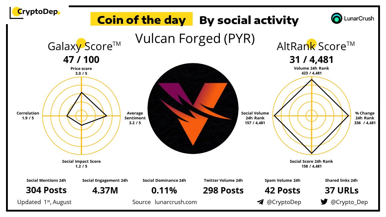 ββCoin of the day by social activity - Vulcan Forged (PYR)