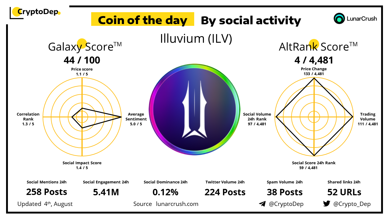 ββCoin of the day by social activity - Illuvium (ILV).