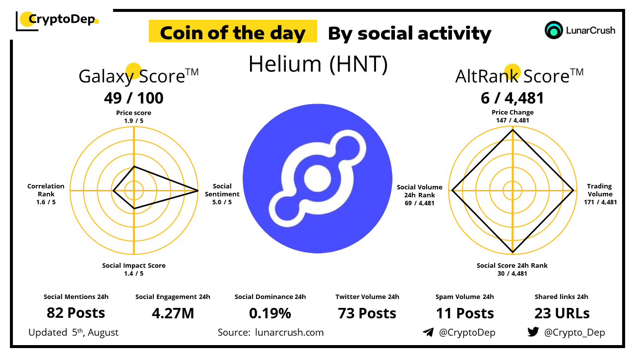 ββCoin of the day by social activity - Helium (HNT).