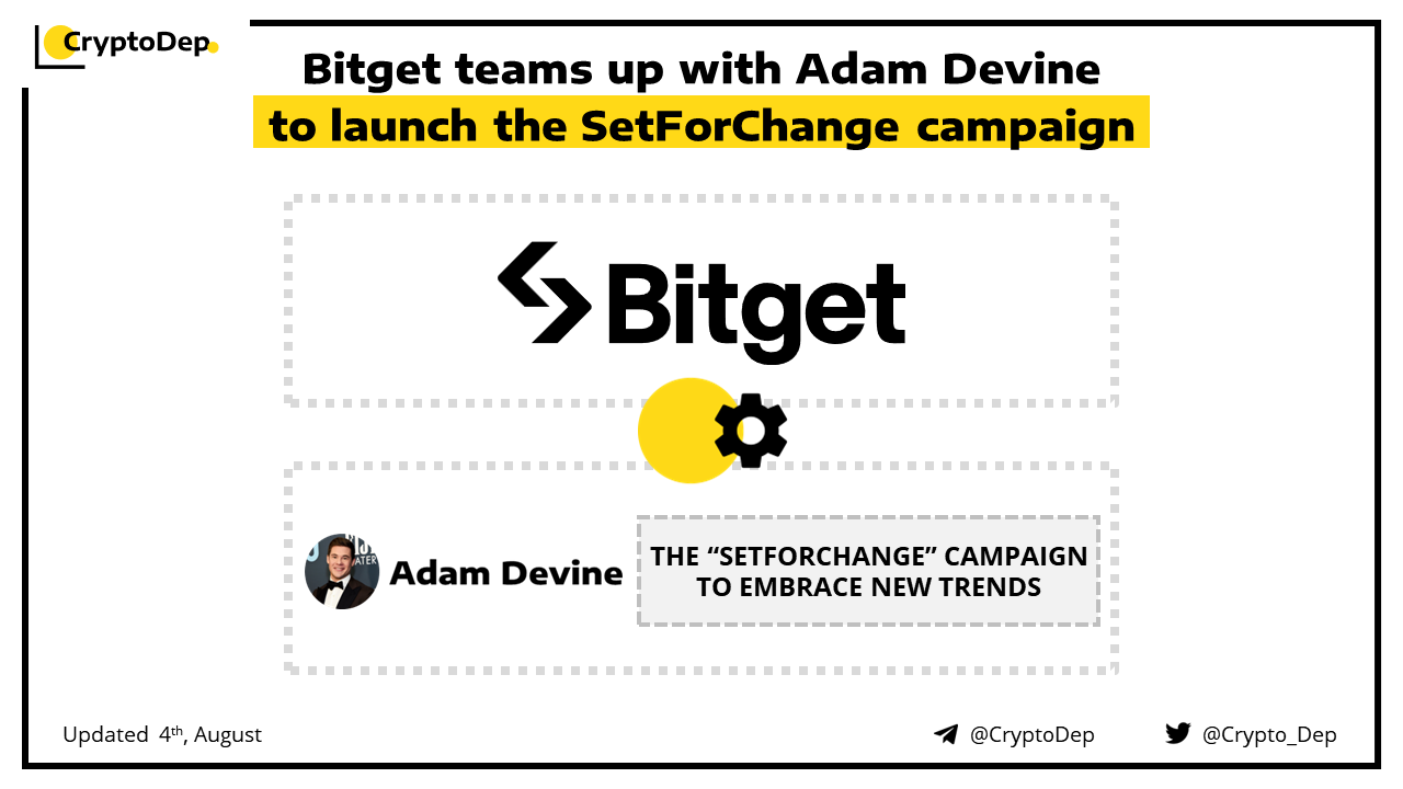 Bitget, a crypto derivatives exchange, has announced a partnership with American actor and comedian Adam Devine. Through this partnership, the two parties will launch the SetForChange campaign that highlights the new way of life embracing the future of money, using modern financial tools, and the possibilities of Web3.