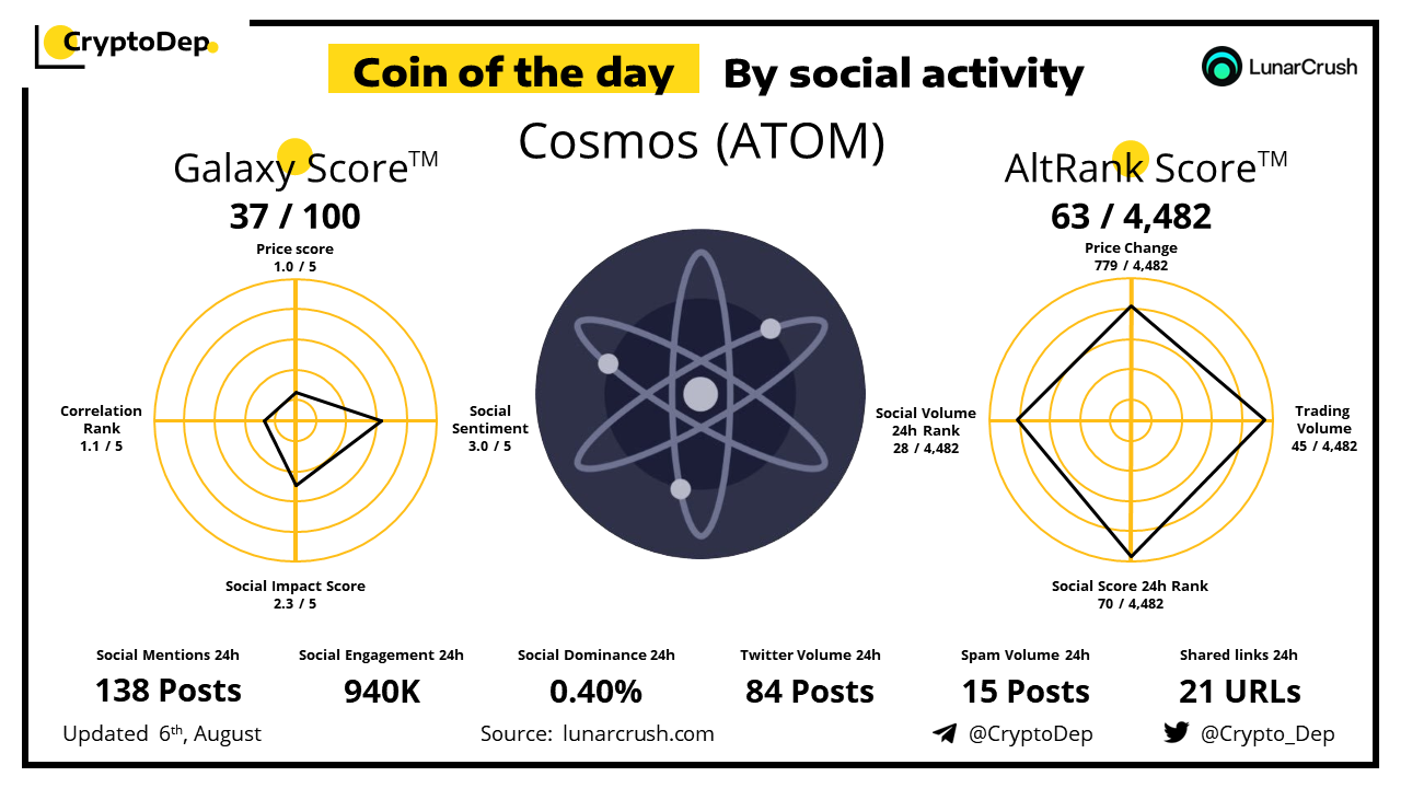 ββCoin of the day by social activity - Cosmos (ATOM).
