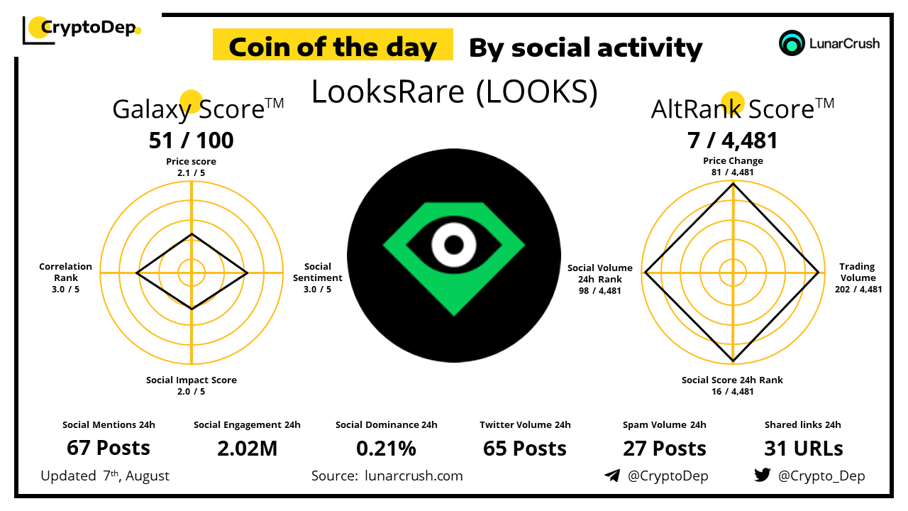 ββCoin of the day by social activity - LooksRare (LOOKS).