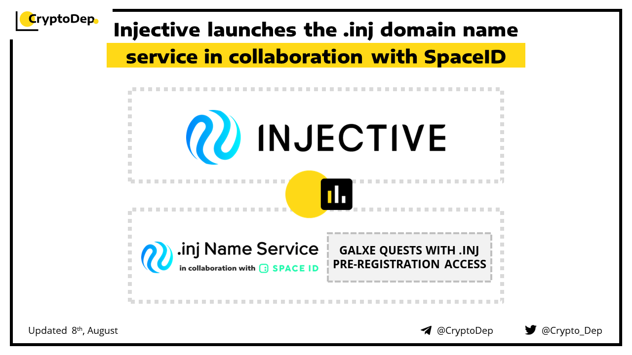 Injective has introduced the .INJ name domain service, launched in partnership with SpaceID. Users can get an exclusive access to .INJ domain pre-registration by completing a series of quests on the Galxe platform. Injective is an open, interoperable blockchain optimized for DeFi applications.