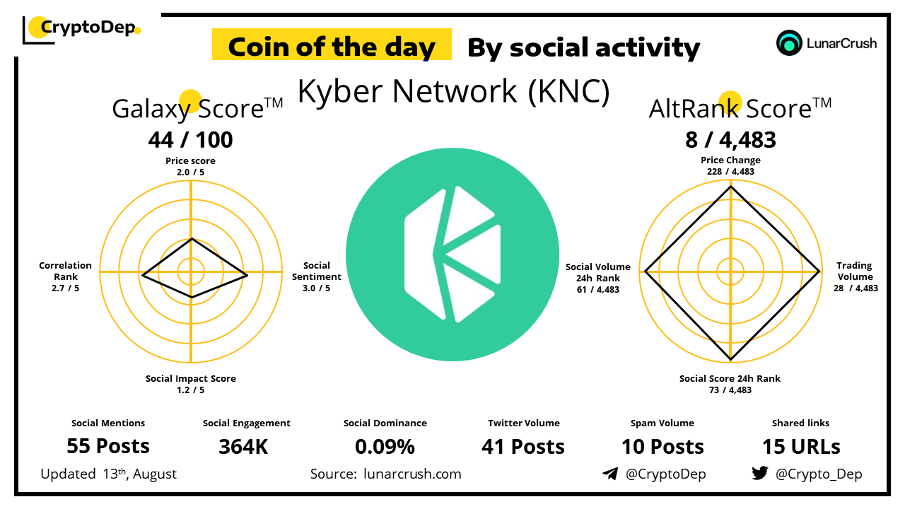 ββCoin of the day by social activity - Kyber Network (KNC).