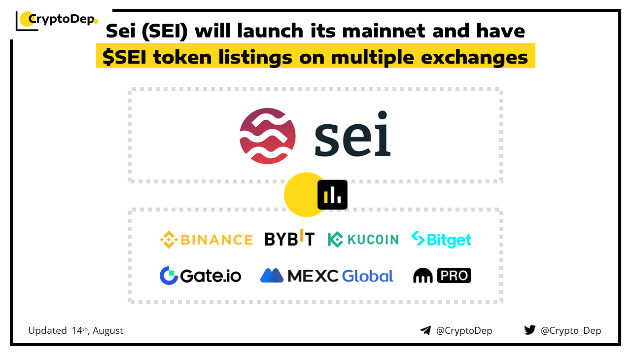 ββSei (SEI) will launch its mainnet and have $SEI token listings on multiple exchanges tomorrow, on August 15th